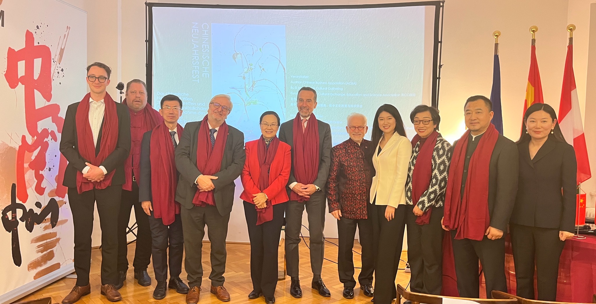近日,奥中商业协会举办春节招待会,亓玫大使及奥前总理科恩、联邦商会副主席马茨内特、奥中商协主席章格出席并致辞,奥中商协会员及奥政经学界代表参加。