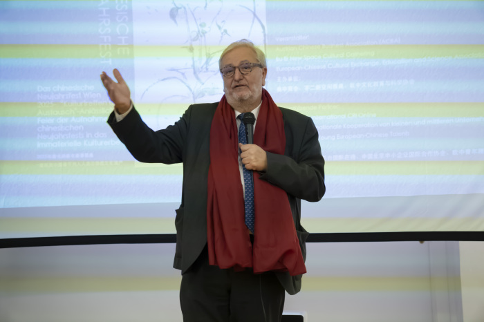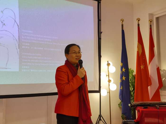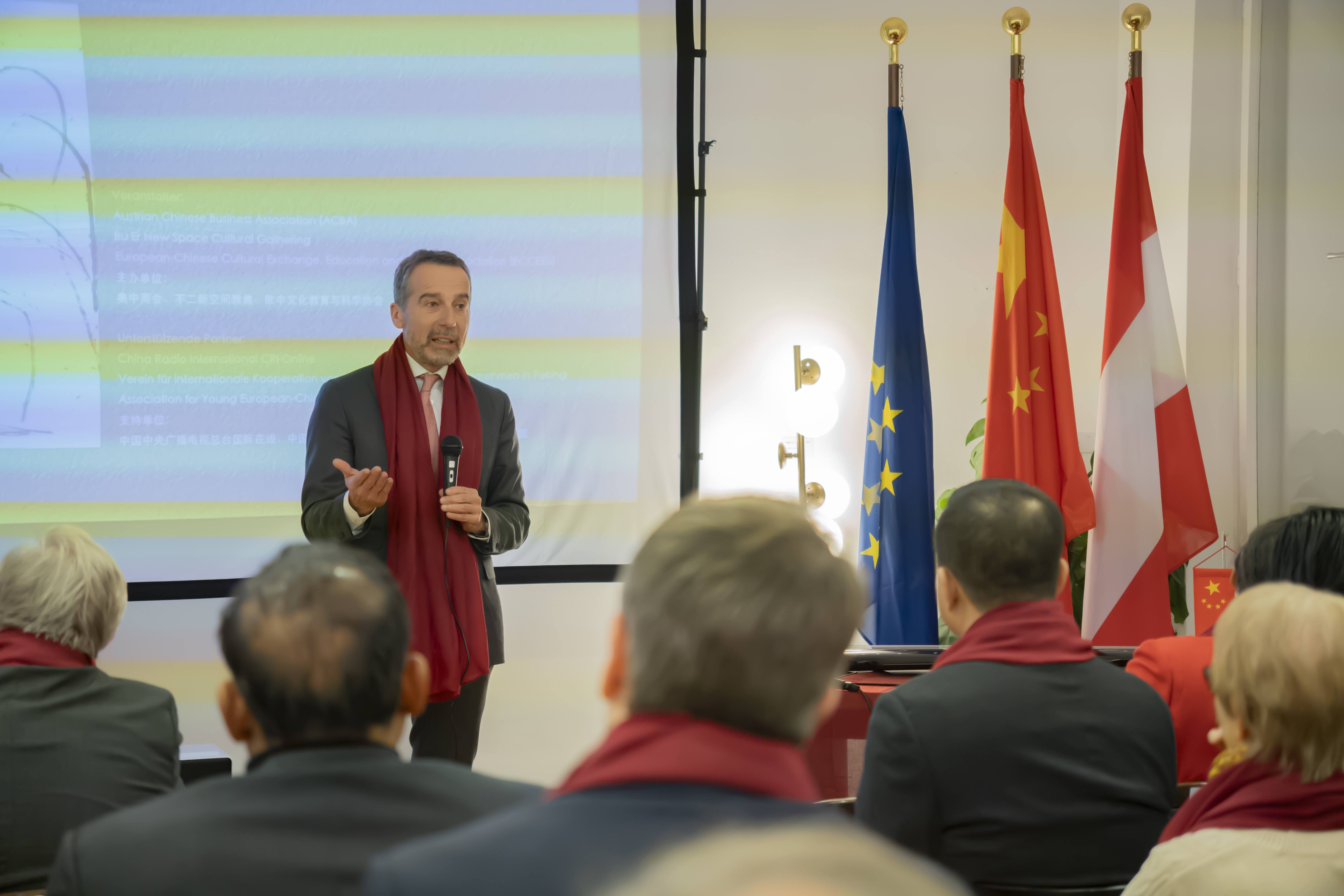科恩向在奥华侨华人和与会嘉宾祝贺新年,结合近期访华经历,分享了亲眼所见中国在经济、科技等各领域取得的丰硕成果以及中国人民昂扬向上的精神面貌,呼吁奥各界客观看待中国的发展与进步,积极寻求互利合作,共同应对全球性风险和挑战。马茨内特、章格在致辞中高度评价奥中关系新发展,期待双边合作不断深化。章格还分享了奥中商协去年组团赴西藏考察访问情况,播放了中央广播电视总台西藏专题片。